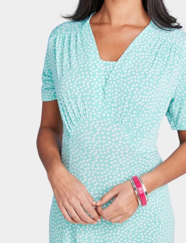 Perfectly presented in an elegant 41 inch length, our dress features a pretty spotted pattern all over. Thoughtfully designed, this dress is bound to suit a selection of looks from your wardrobe. Dress up for lunch with stylish heels and a wrap or pair it with summer deck shoes and take a seaside stroll.
